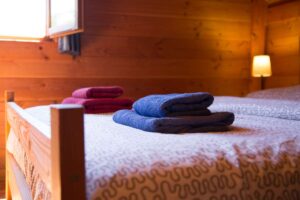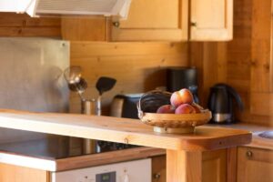 Le chalet est équipé d’un poêle à bois pour les vacanciers de l’hiver, amoureux des intempéries… et du calme, de la chaleur du feu de bois avec un petit bouquin en regardant d’un air rêveur les éléments qui se déchaînent dehors, dans la bonne odeur, amis gourmands, d’un gâteau tout juste sorti du four (les chalets ont tous une cuisine équipée).