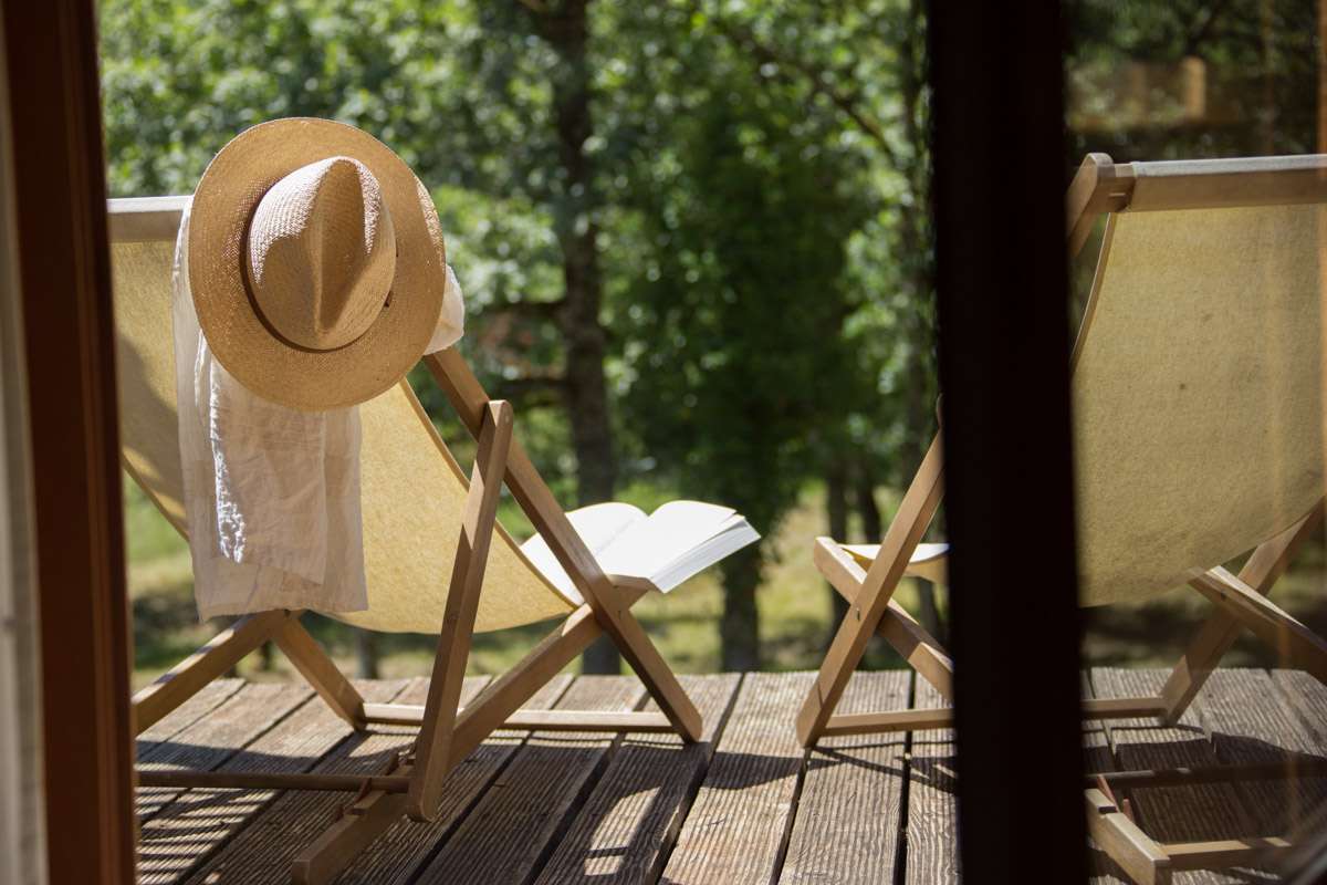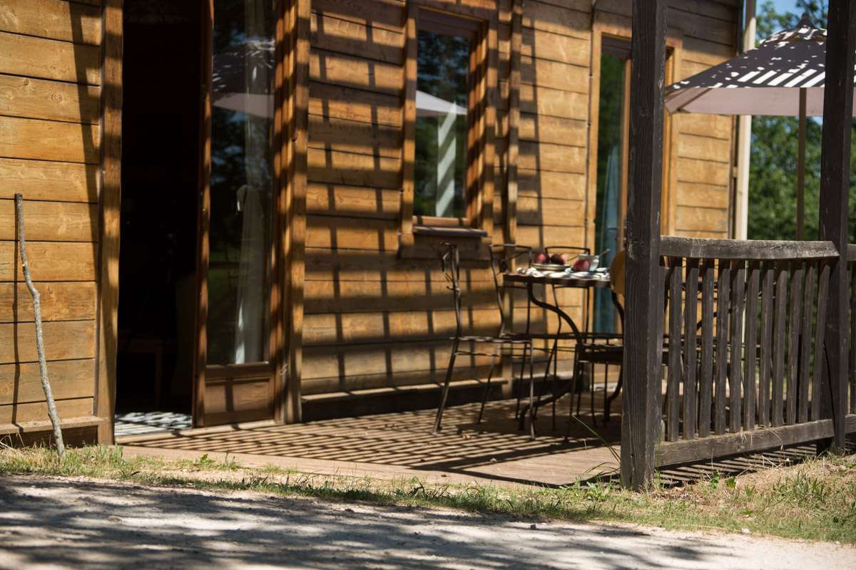 Chaque chalet possède sa propre terrasse avec pergola, table et chaises… pour les beaux jours. Pas de vis-à-vis, pour préserver cette intimité qui nous est si chère. Et il y a tout de même des voisins si on souhaite un peu de convivialité pour l’apéro…